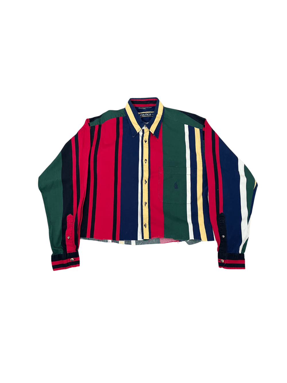 Vintage Nautical Men's Button Down cropped with a frayed hem !